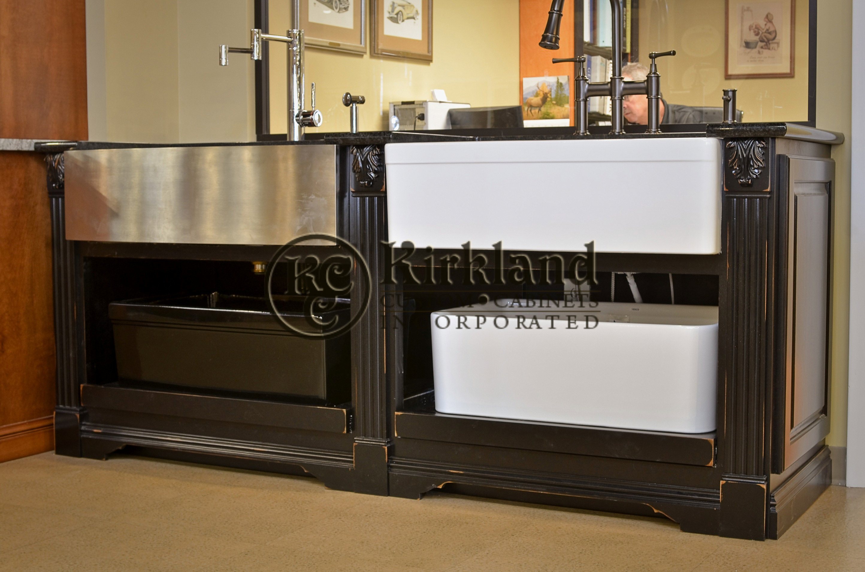 Commercial Farm Sink Display-Black paint with Brown rub-through distress